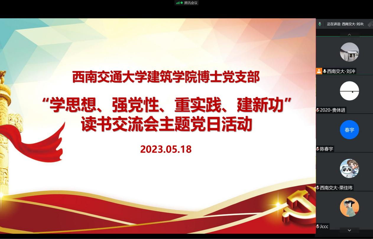 博士党支部采用腾讯会议的形式组织开展“学思想、强党性、重实践、建新功”读书交流会主题党日活动。