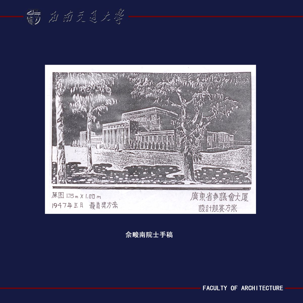 佘俊南(1916.10-1998.7)广东潮阳人,中国工程院资深院士、著名建筑大师、全国五一劳动模范。1941毕业于交通大学唐山工程学院并留校任教