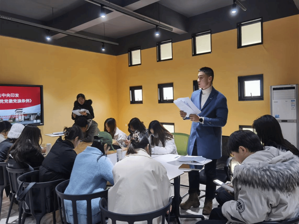 2023年11月23日上午11:00,本科城乡规划党支部于犀浦校区建筑学院图书馆前厅开展主题党日活动,会议由党支部书记奉天同志主持,本科城乡规划党支部党员、预备党员共同参与。