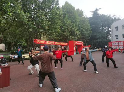 九里校区门球场举行。活动旨在通过传统运动八段锦的学习与实践,增强社会协同力,促进青老年之间的交流与互动,同时利用专业知识改善社区人居环境,为门球协会的老年人提供更加舒适安全的运动环境。