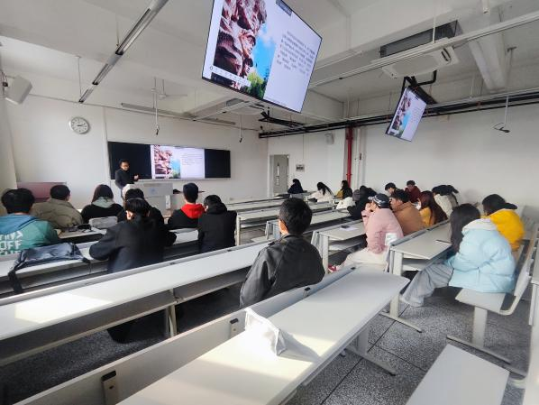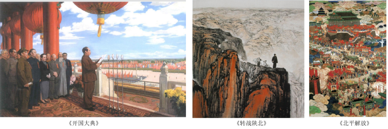 活动伊始,舒老师对红色美术作品的题材、形式、风格与内容上等进行了阐释,引导我们从美术作品的角度,揭秘经典作品背后的党史故事。通过对《开国大典》、《转战陕北》、《北平解放》等不同主题绘画作品的引领解读,我们学习了美术经典中的历史事件和英雄人物、革命精神。