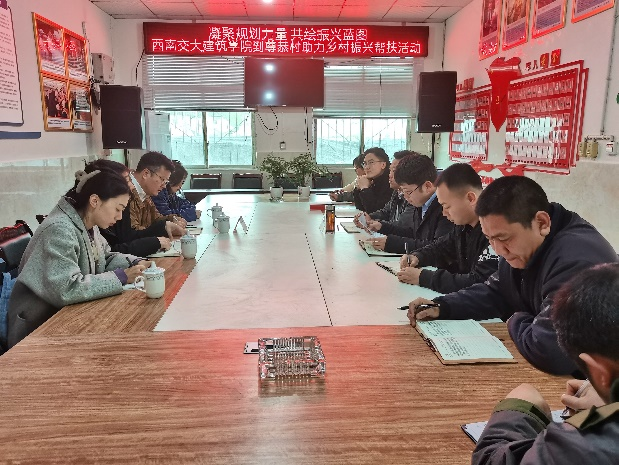 城乡规划师生党支部展“凝聚规划力量,共绘振兴蓝图”——赴尊恭村助力乡村振兴帮扶结对活动。学院城乡规划系党支部书记于洋、学院党委组织员方翰、研城乡规划党支部书记周艾莲、关心茹、成都董家梗镇尊恭村党总支书记袁世超、村第一书记张华兴、驻村选调生李渊、村委会副主任刘泉鑫等人参与了此次帮扶结对活动。