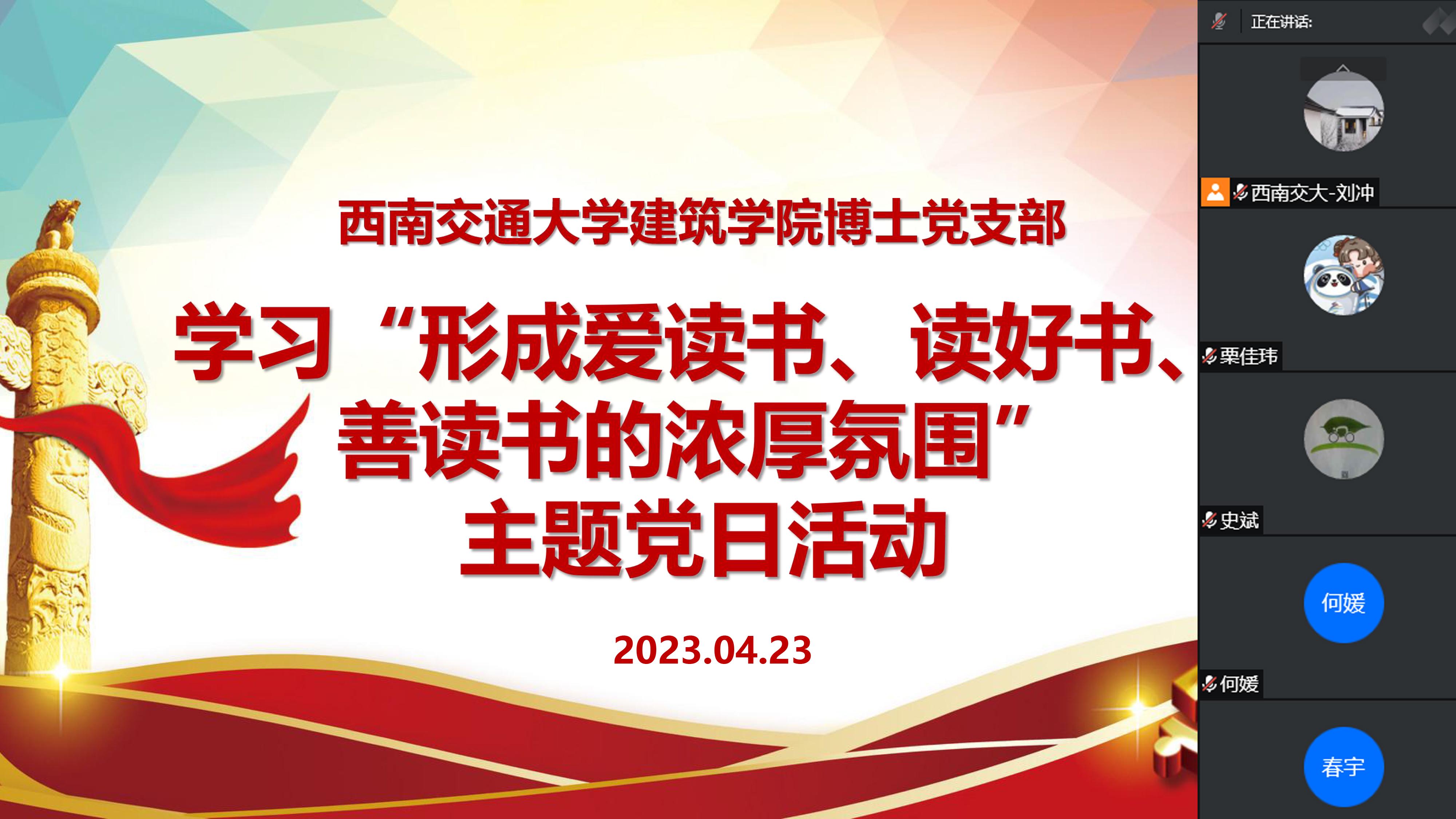 博士党支部采用线上腾讯会议的方式组织学习“形成爱读书、读好书、善读书的浓厚氛围”主题党日活动。