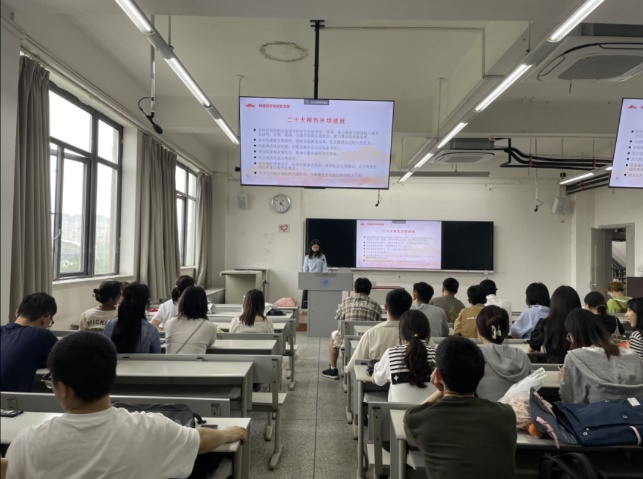会议第二项由王桂如、张宸郗、陆璐三位积极分子进行二十大的知识分享。张宸郗同志分享了“两个确立”的知识,强调“两个确立”是坚强的领导核心和科学的理论指导,是关乎党和国家前途命运、党和人民事业成败的根本性问题。王桂如同志分享了“三个务必”的知识,强调“三个务必”源于对党的性质宗旨的深刻体悟、对党的百年奋斗历史经验的深刻总结、对党肩负使命任务的深刻把握。陆璐同志分享了“两个结合”的知识,强调“两个结合”对中国共产党不断推动理论创新、进行理论创造的科学总结,是以史为鉴、开创未来,对继续发展当代中国马克思主义具有重要意义。通过三位同志的分享,其余同学积极发言,研建筑学专硕党支部全体党员和积极分子对二十大精神有了进一步的认识与了解,作为青年学生党员,我们得益于党和国家的重大发展成果,获得更多实现梦想的机会,但我们更需要有党员的担当,自觉投身于未来的社会建设和时代潮流之中。